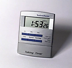 The Talking Timer uses two AG13 or equivalent button batteries, which are included.